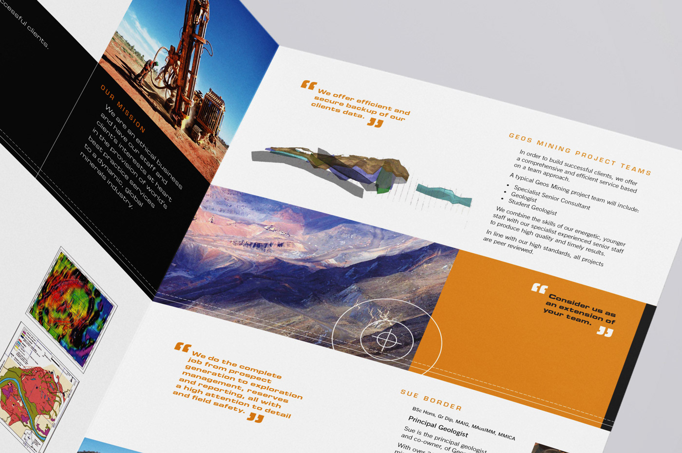 Geos Mining is a geology consultancy based in Sydney. I designed and produced this four page corporate brochure for them.